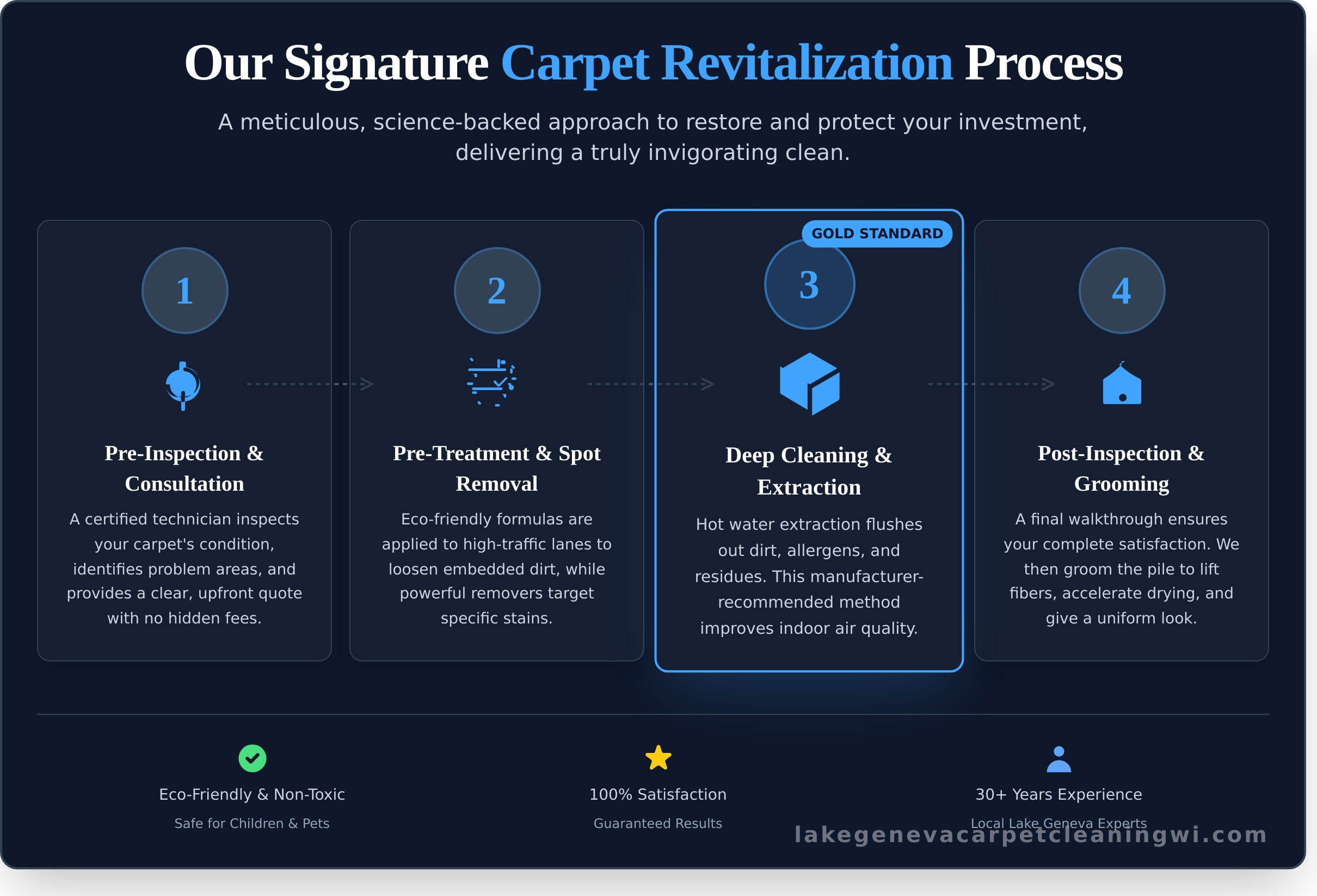 Our promise is simple: a premier service that delivers revitalized results. We are confident that our meticulous approach will leave you thrilled with carpets that look and feel exceptionally fresh and clean. If for any reason you are not completely satisfied with our **Lake Geneva Carpet Cleaning Wi **services, we will return to make it right—no questions asked. Building long-term trust is the foundation of our business, and our guarantee is our commitment to you.